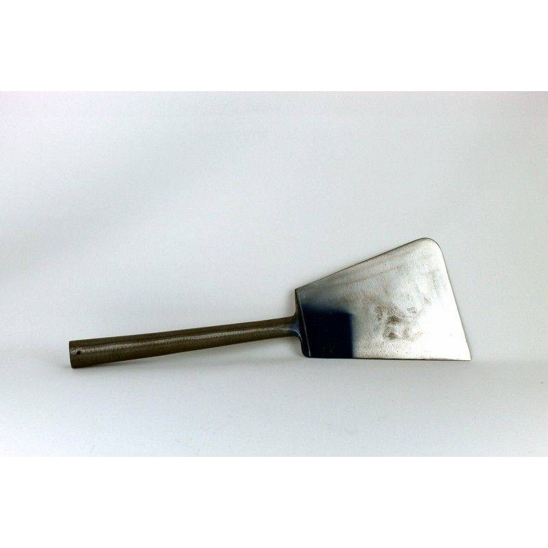 Forjado y templado en acero de alta calidad, vaciado para afilar con piedra especial. Diseñado en ángulo para dar salida a la cuchilla al clavar. Sus medidas son 21 cms de largo de hoja, 16 cms de ancho y una longitud de mango de 31 cms.