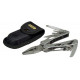 Herramienta de acero inoxidable y mango ergonónomico. De uso sencillo. Funda para el cinturón incluida. Está compuesto de Alicate universal, Alicate cortacables, Alicate con boca curvada dentada, Mini serrucho, Lima, Cuchillo, Mini cuchillo, Abre botellas, Destornillador punta plana 4/8/3mm, Destornillador punta Philips 1PH.