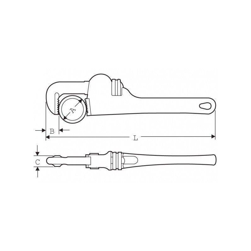 Llave de tubo super Ego 104 10 con  mango monoblock en aleación de aluminio ultraligero templado. Mordazas con doble tratamiento térmico. Diferentes aperturas de bocas para el mismo tamaño de mango.